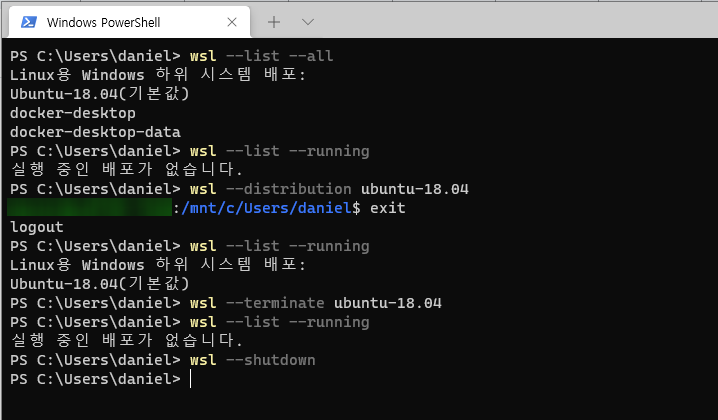 PS C:\Users\daniel> wsl --terminate ubuntu-18.04